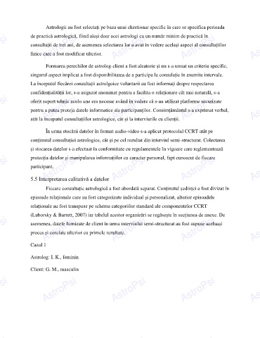 conținutul consultației astrologice, cât și pe cel rezultat din interviul semi-structurat. Colectarea