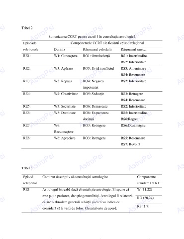 AstroPsi Tabel 2 Sumarizarea CCRT pentru cazul 1 în consultația astrologică AstroPsi