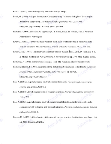 Rank, O. (1945). Will therapy; and, Truth and reality. Knopf. AstroPsi AstroPsi