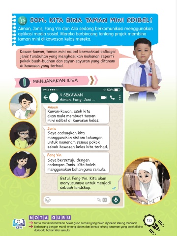 Aiman, Jonis, Fang Yin dan Alia sedang berkomunikasi menggunakan