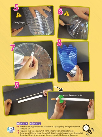 Tunjukkan cara yang betul untuk membuat semburan cat kepada murid.