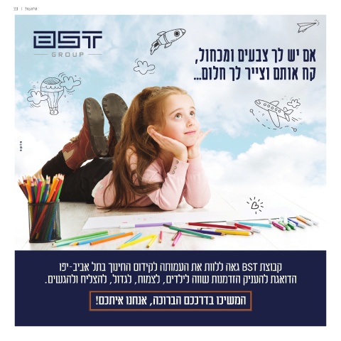 נחושת | 111 אם יש לך צבעים ומכחול, קח אותם וצייר לך חלום... קבוצת BSTגאה ללוות את העמותה לקידום החינוך בתל אביב-יפו הדואגת להעניק הזדמנות שווה לילדים ,לצמוח ,לגדול ,להצליח ולהגשים. המשיכו בדרככם הברוכה ,אנחנו איתכם!