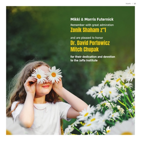 | נחושת118 Mikki & Morris Futernick Remember with great admiration Zonik Shaham z“l and are pleased to honor Dr. David Portowicz Mitch Chupak for their dedication and devotion to the Jaffa Institute