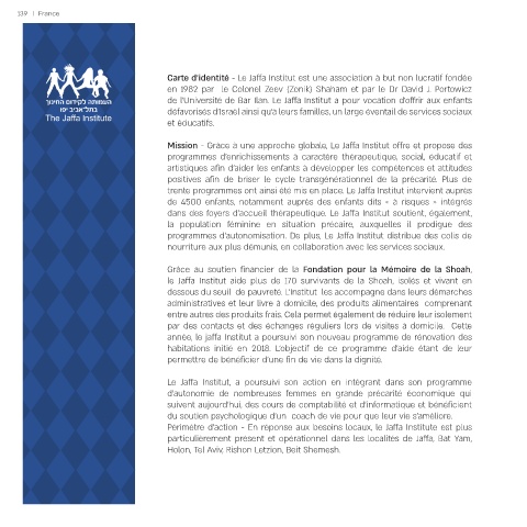 dans des foyers d'accueil thérapeutique. Le Jaffa Institut soutient, également,