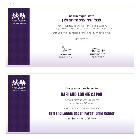 תודה והוקרה מיוחדת