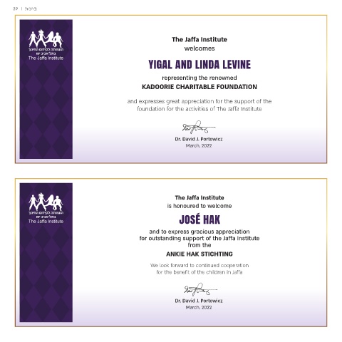 for outstanding support of the Jaffa Institute
