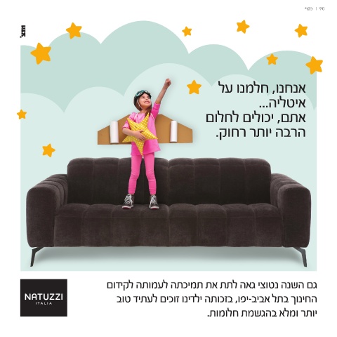 | 90כסף אאינטחלניו,ה..ח.למנו על אתם ,יכולים לחלום הרבה יותר רחוק. גם השנה נטוצי גאה לתת את תמיכתה לעמותה לקידום החינוך בתל אביב-יפו ,בזכותה ילדינו זוכים לעתיד טוב יותר ומלא בהגשמת חלומות.