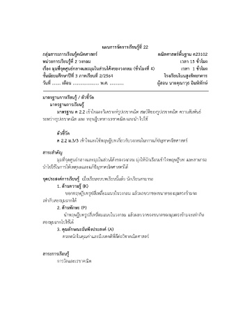 แผนการจัดการเรียนรู้ที่ 22