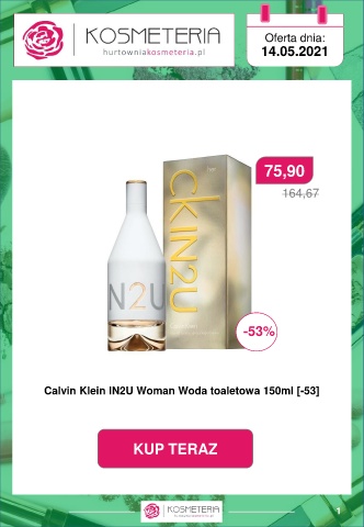 Oferta dnia: 14.05.2021 75,90 164,67 -53% Calvin Klein IN2U Woman Woda toaletowa 150ml [-53] KUP TERAZ 1