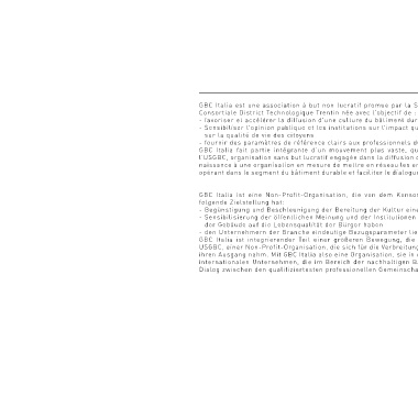 GBC Italia est une association à but non lucratif promue par la Società Consortile Distretto Tecnologico Trentino (Société