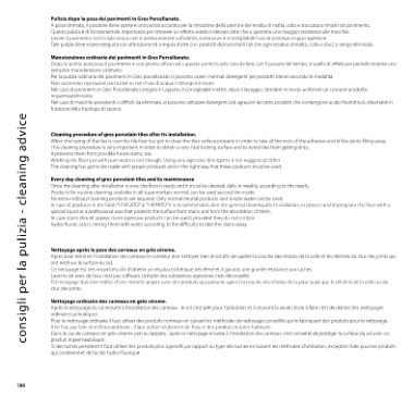 Nel caso di pavimenti in Gres Porcellanato Levigato e Lappato, è consigliabile inoltre, dopo il lavaggio, stendere in modo uniforme un comune prodotto