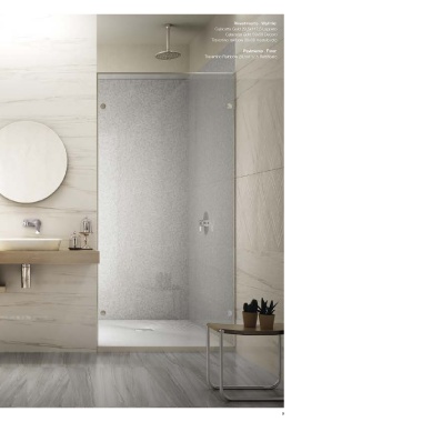 FANCY DECORS Calacatta Gold 29,5x117,5 Lappato Rivestimento . Wall tile: Calacatta Gold 59x59 Decoro TO EXPRES YOURSELF Travertino rainbow 30x30 modulo rete Pavimento . Floor: Travertino Rainbow 29,5x117,5 Rettificato 8 9
