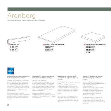 ARENBERG è un prodotto realizzato con ARENBERG is a product manufactured ARENBERG est un produit réalisé ARENBERG ist ein mit der Sichenia- • Piastrelle consigliate per ambienti sottoposti a traffico molto pesante e non protetti da agenti abrasivi, nei quali è richesta una resistenza all’abrasione profonda che un pavimento smaltato per sua natura