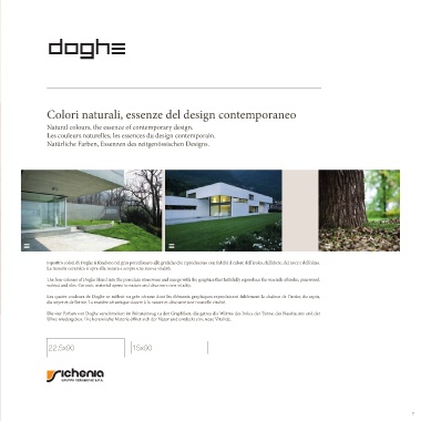 The four colours of Doghe blend into the porcelain stoneware and merge with the graphics that faithfully reproduce the warmth of iroko, pinewood,