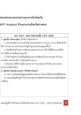 แผนปฏิบัติการด้านแรงงานจังหวัดอ่างทอง (พ.ศ. 2563 - 2565) ฉบับทบทวน 78