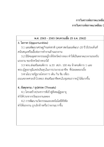 ท าให้ประชากรวัยแรงงานลดลง 4. ภัยคุกคาม / อุปสรรค (Threats)