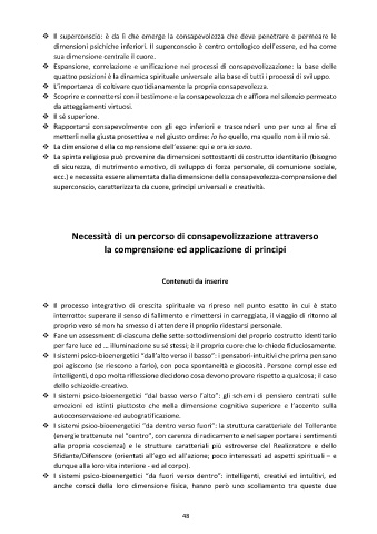 ecc.) e necessita essere alimentata dalla dimensione della consapevolezza-comprensione del