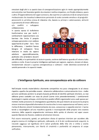 propria essenza di intelligenza spirituale, coltivando, al di là dei condizionamenti acquisiti, la