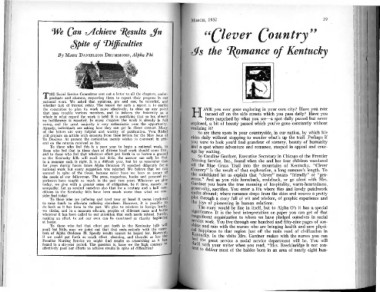 T o those who feel this is a poor year to begin a national work, to off the Blue Grass Trail into the mountains of Kentucky. "Clever