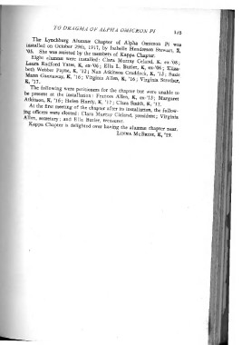 be present at the installation: Frances Allen, K, ex-'13; Margaret