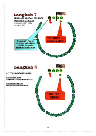 7 8 SELEPAS UCAPAN RINGKAS Pemimpin Kanan Bergerak ke tempatnya semula Pemimpin Bertugas Mengarahkan troop sedia 15