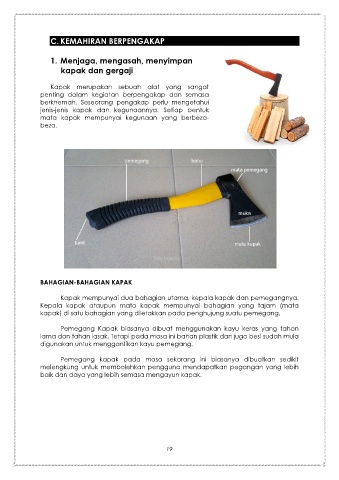 Kapak mempunyai dua bahagian utama, kepala kapak dan pemegangnya.