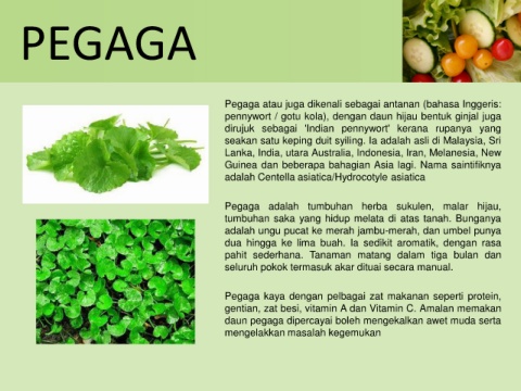 Pegaga kaya dengan pelbagai zat makanan seperti protein,