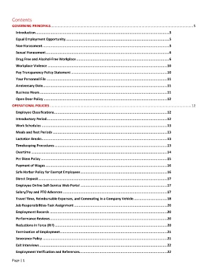 Employee Classifications............................................................................................................... 12
