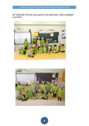 REVISTA DIGITAL COLEGIO PÚBLICO ERMITAGAÑA SCHOOL CURSO 20-21 En Carnaval, hicimos unos gorros muy graciosos. ¡Nos quedaban muy bien! 8