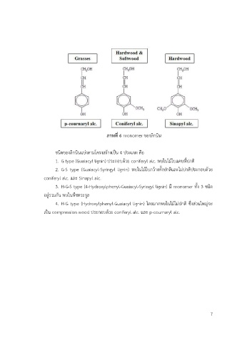 1. G type (Guaiacyl lignin) ประกอบด้วย coniferyl alc. พบในไม้ใบแคบที่ปกติ