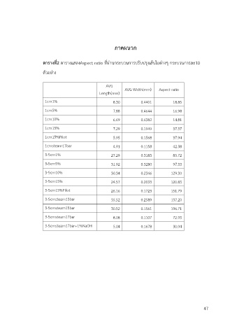 ตารางท2 ตารางแสดงAspect ratio ที่ผ่านกระบวนการปรับปรุงเส้นใยต่างๆ กระบวนการละ10