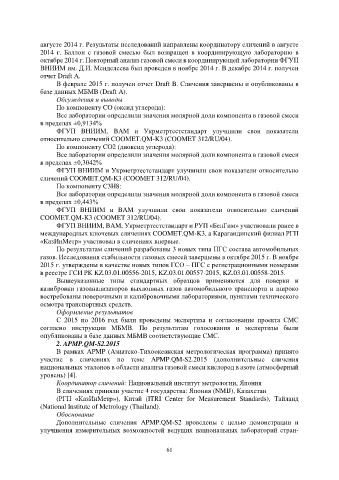 международных ключевых сличениях COOMET.QM-K3, а Карагандинский филиал РГП