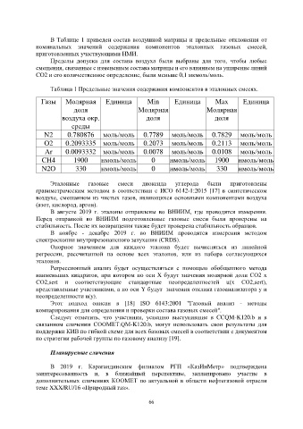 Таблица 1 Предельные значения содержания компонентов в эталонных смесях.