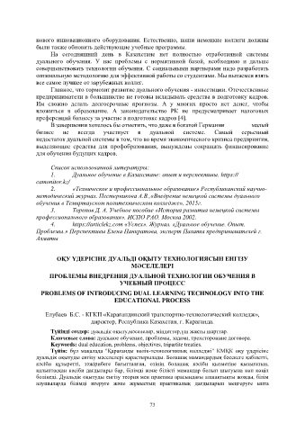 дуальдік оқытуды енгізу мәселелері қарастырылады. Болашақ мамандардың бәсекеге қабілетті,