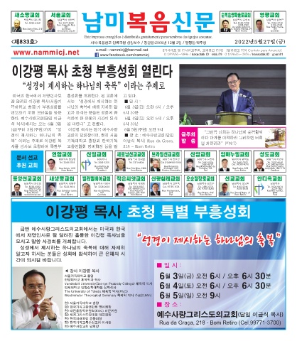 Page 1 - [남미복음신문_833호]2022년 5월 27일 지면보기