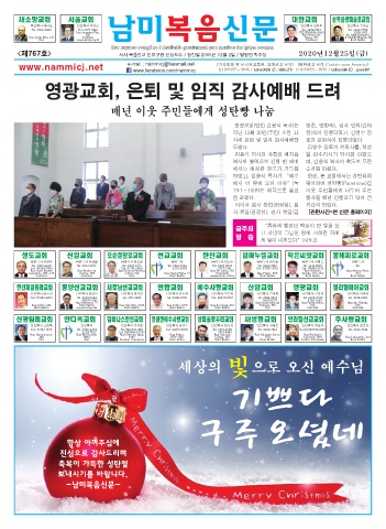 <제767호> 사시:복음선교 인류구원 신앙보수 / 창간일:2005년 12월 2일 / 발행인:박주성 2020년12월25일(금)
