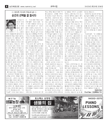 4 남미복음신문 www.nammicj.net 오피니언 2022년1월28일 금요일