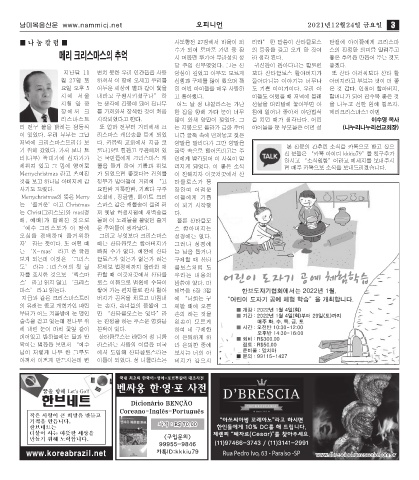 남미복음신문 www.nammicj.net 오피니언 2021년12월24일 금요일 3