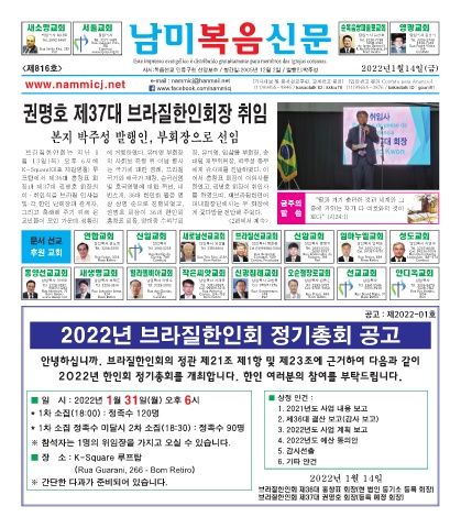 Page 1 - [남미복음신문_816호]2022년 1월 14일 지면보기