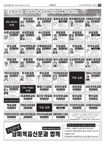남미복음신문 www.nammicj.net 교회안내 2020년8월28일 금요일 15