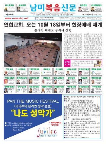 Page 1 - [남미복음신문_759호]2020년 10월 16일 지면보기