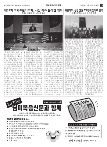 남미복음신문 www.nammicj.net 한국교계/세계교계 2020년10월16일 금요일 13