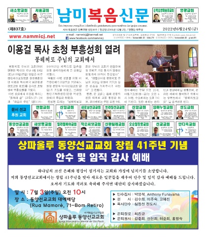 Page 1 - [남미복음신문_837호]2022년 6월 24일 지면보기