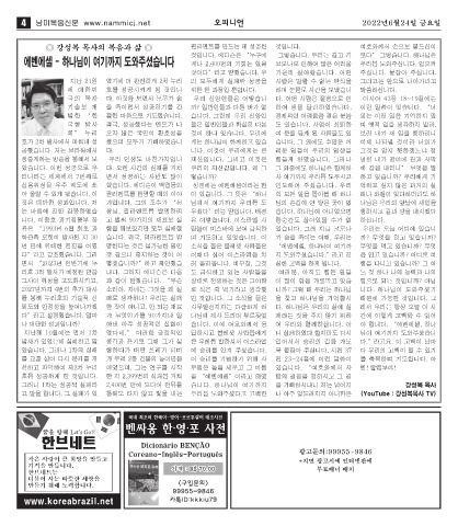 4 남미복음신문 www.nammicj.net 오피니언 2022년6월24일 금요일
