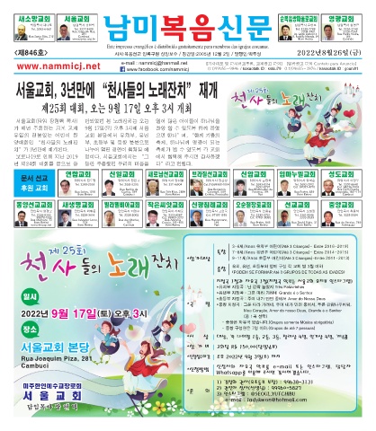 Page 1 - [남미복음신문_제846호]2022년 8월 26일 지면보기