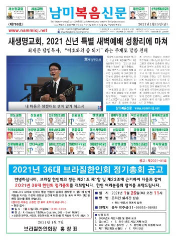 Page 1 - [남미복음신문_769호]2021년 1월 15일 지면보기