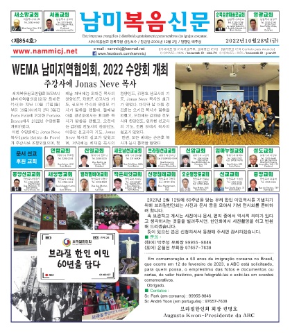 Page 1 - [남미복음신문_854호]2022년 10월 28일 지면보기