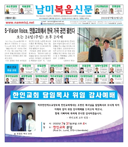 Page 1 - [남미복음신문_841호]2022년 7월 22일