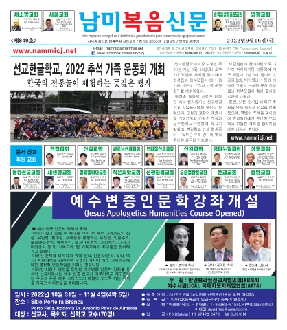 Page 1 - [남미복음신문_849호]2022년 9월 16일 지면보기