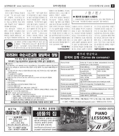 남미복음신문 www.nammicj.net 오피니언/단신 2022년9월16일 금요일 3